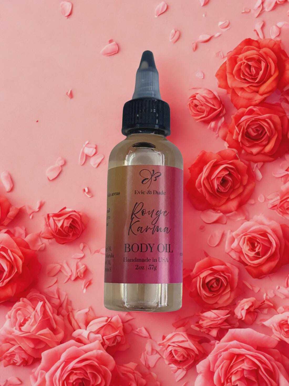 Wrap your skin in the sensual, high-vibe glow of Rouge Karma—a radiant, fast-absorbing body oil infused with the hypnotic essence of our signature Rouge Karma fragrance. Inspired by sultry red silk, golden hour vibes, and fierce feminine energy, this body oil hydrates deeply while leaving a lingering trail of soft heat and mystery.